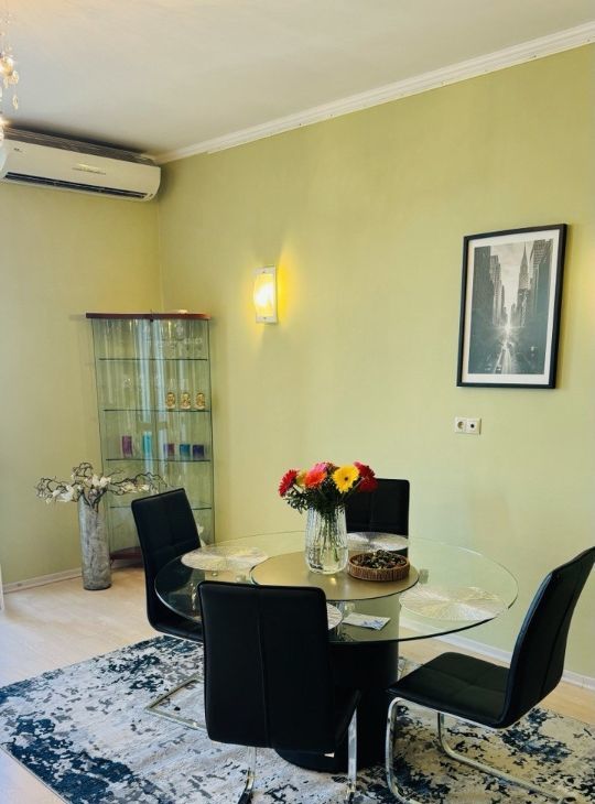 Высокие потолки, свежий ремонт, длительный срок аренды. Квартира полностью укомплектована мебелью и бытовой техникой.