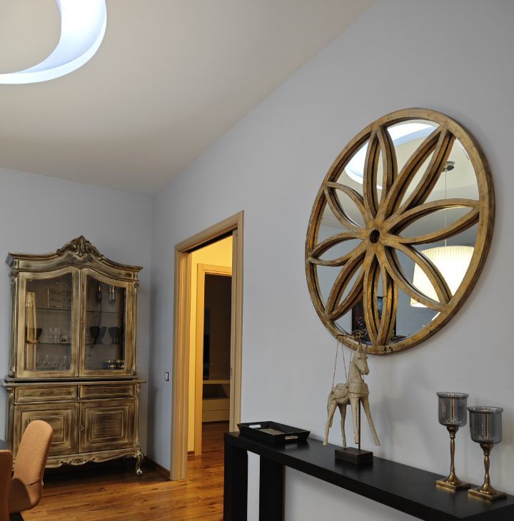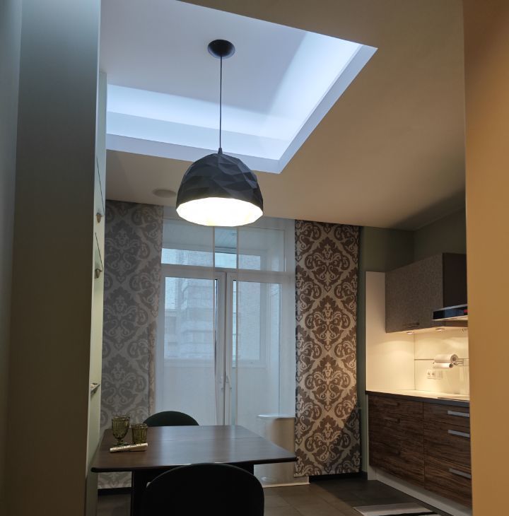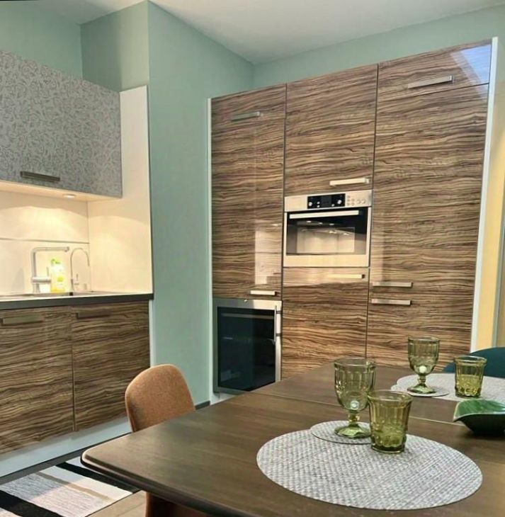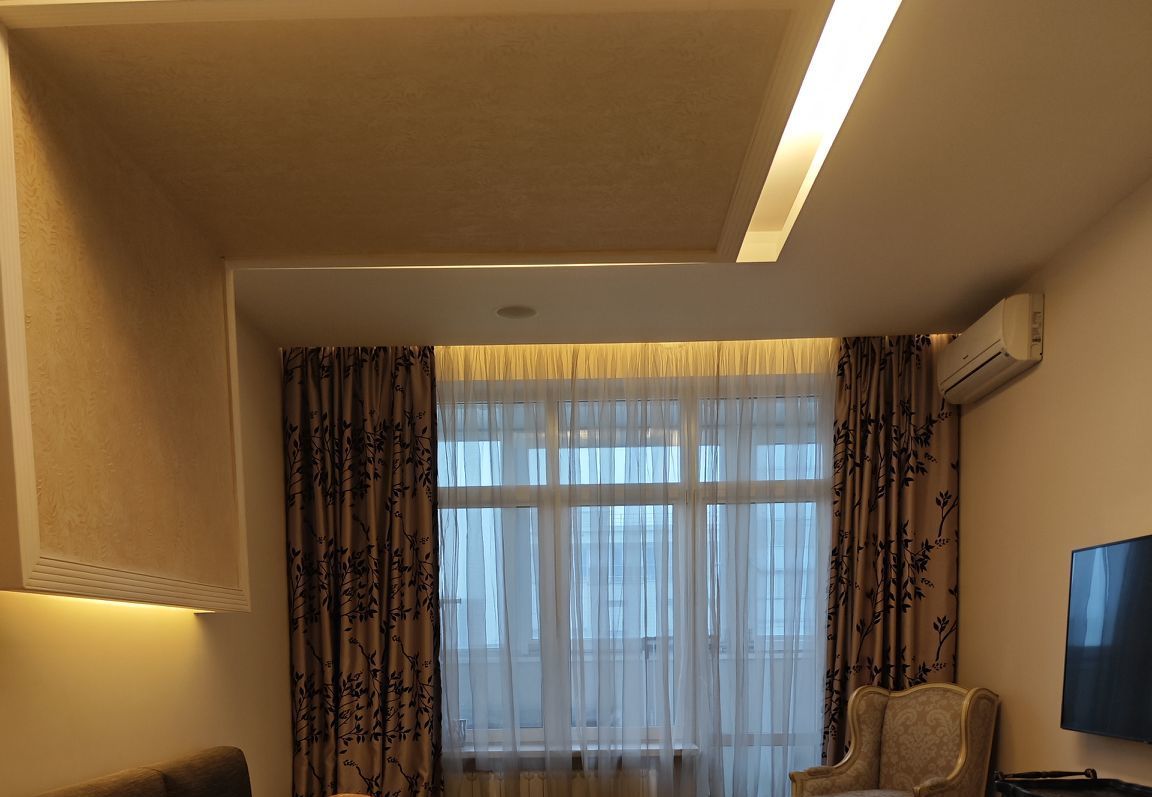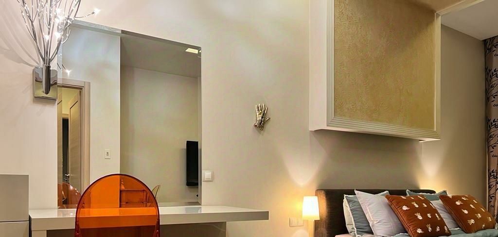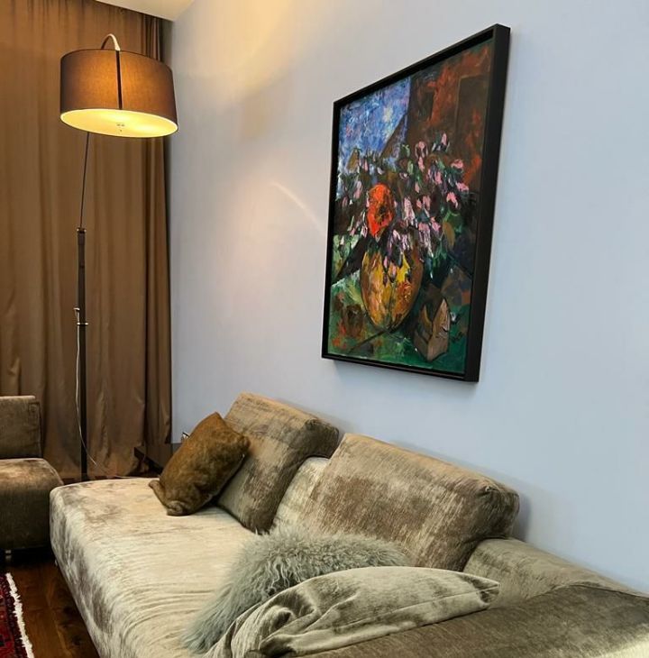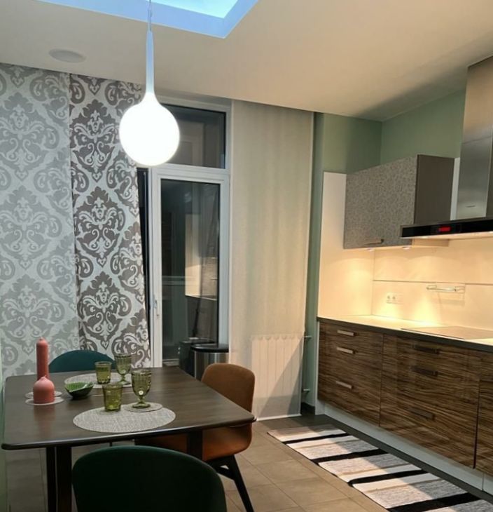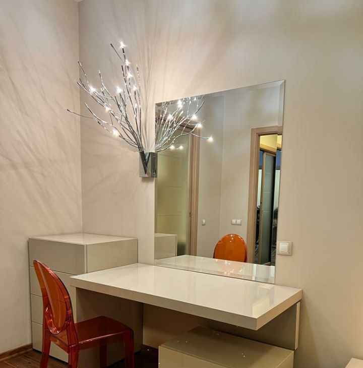 В квартире высокие потолки и многоуровневое освещение, полы из натурального дерева, мебель и текстиль премиум-класса. Кухня оборудована всей необходимой техникой европейских брендов, включая винный шкаф. Мастер-спальня с гардеробной и ванной комнатой. Большая лоджия вдоль квартиры. Гостевой санузел.