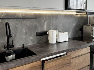 Дорогая удобная мебель, пол массив дерева, кухня оборудована немецкой техникой, включая винный шкаф.