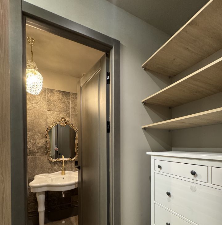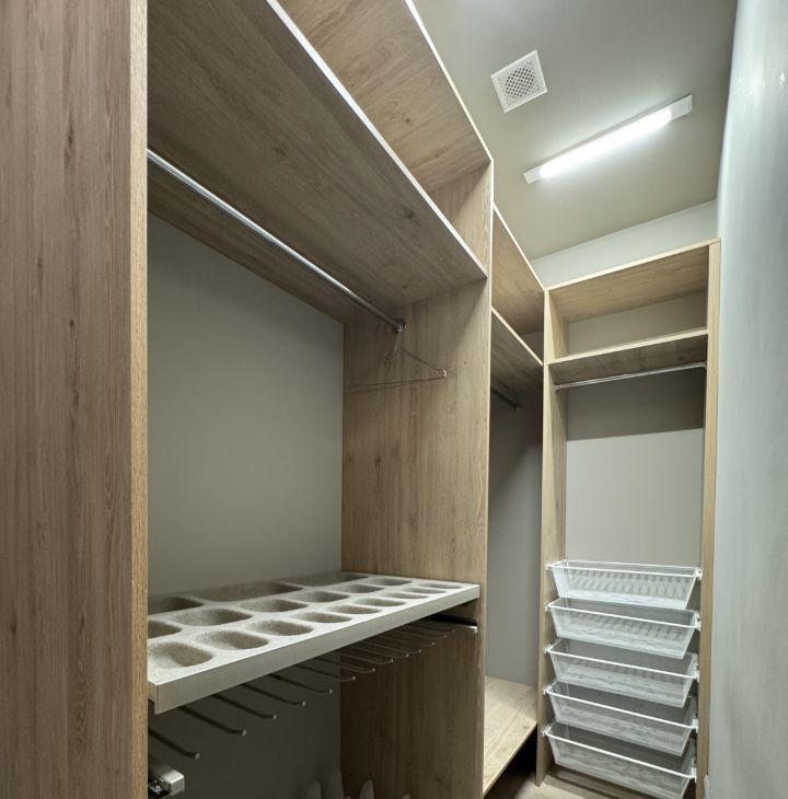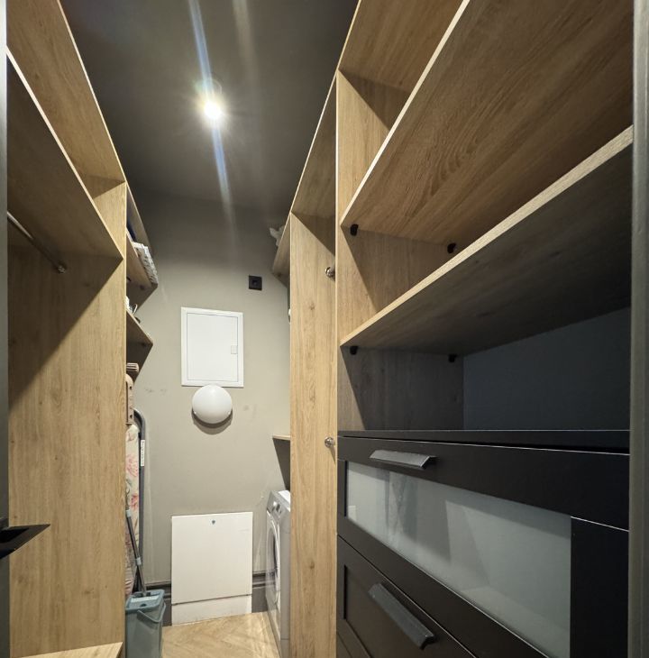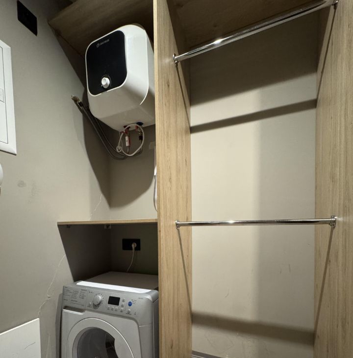 • Гардеробная комната (4 кв.м.) с постирочной и местом хранения хозяйственных принадлежностей: стиральная машина, накопительный водонагреватель.