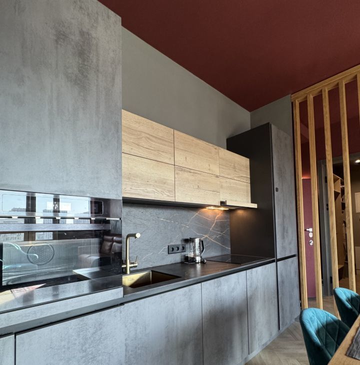 •Встроенная техника: холодильник, индукционная варочная панель, духовой шкаф с СВЧ, фильтр для питьевой воды, вытяжка, посудомоечная машина