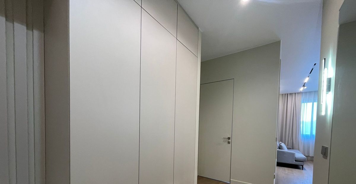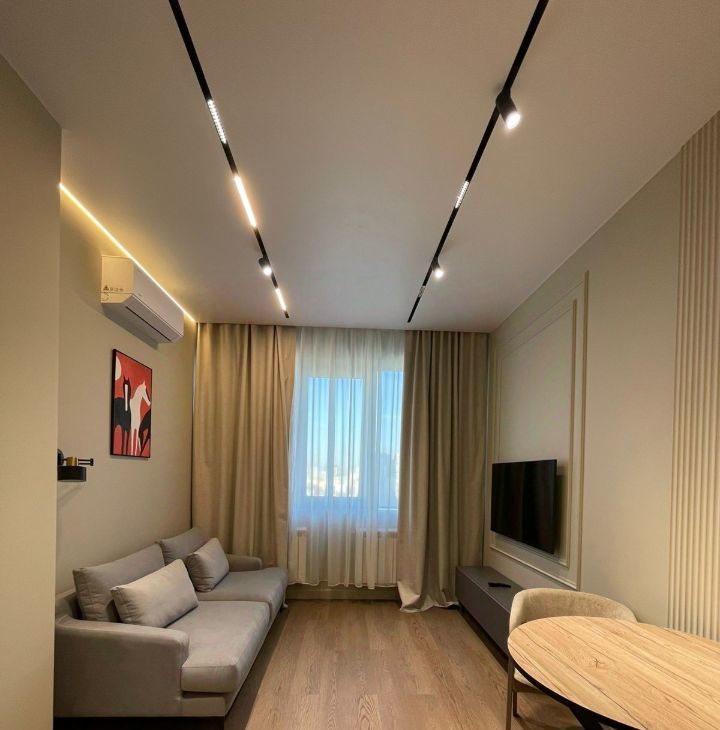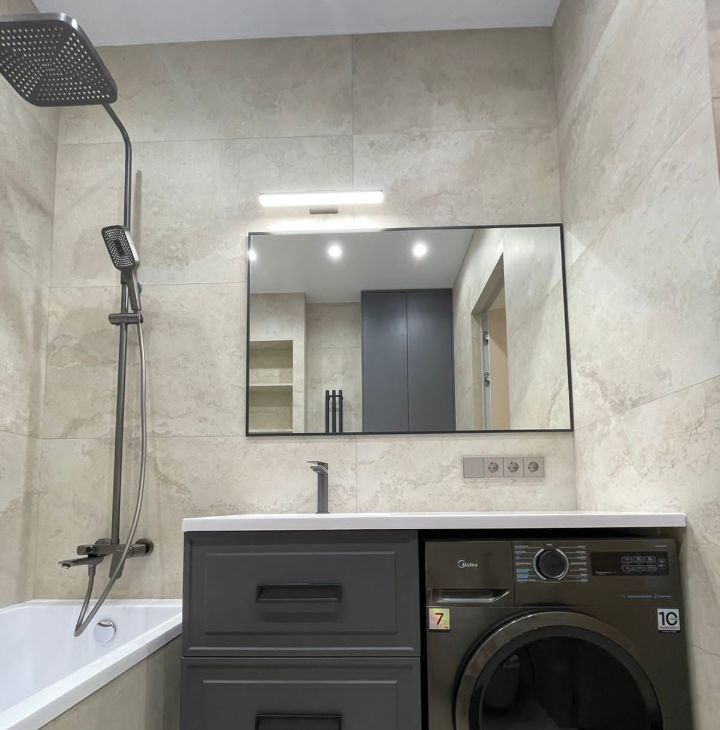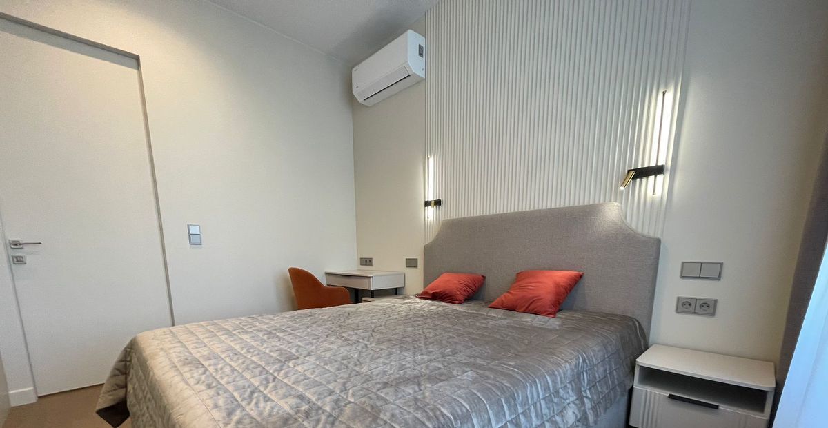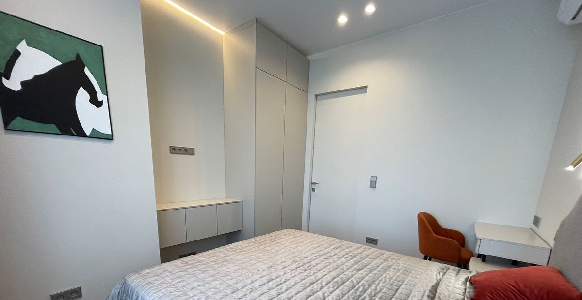 В квартире выполнен дизайнерский ремонт, никто не жил. Вся техника в наличии: встроенный холодильник, кондиционер в каждой комнате, посудомоечная, стиральная машина, ТВ 50 дюймов.