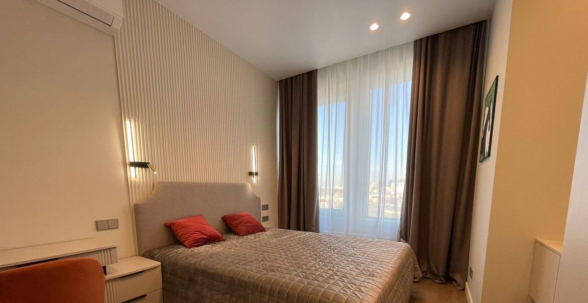 В квартире никто не жил, выполнен дизайнерский ремонт. Вся техника в наличии: встроенный холодильник, кондиционер в каждой комнате, посудомоечная, стиральная машина, ТВ 50 дюймов.