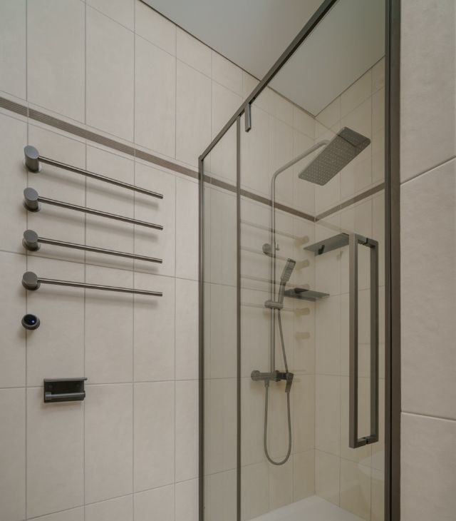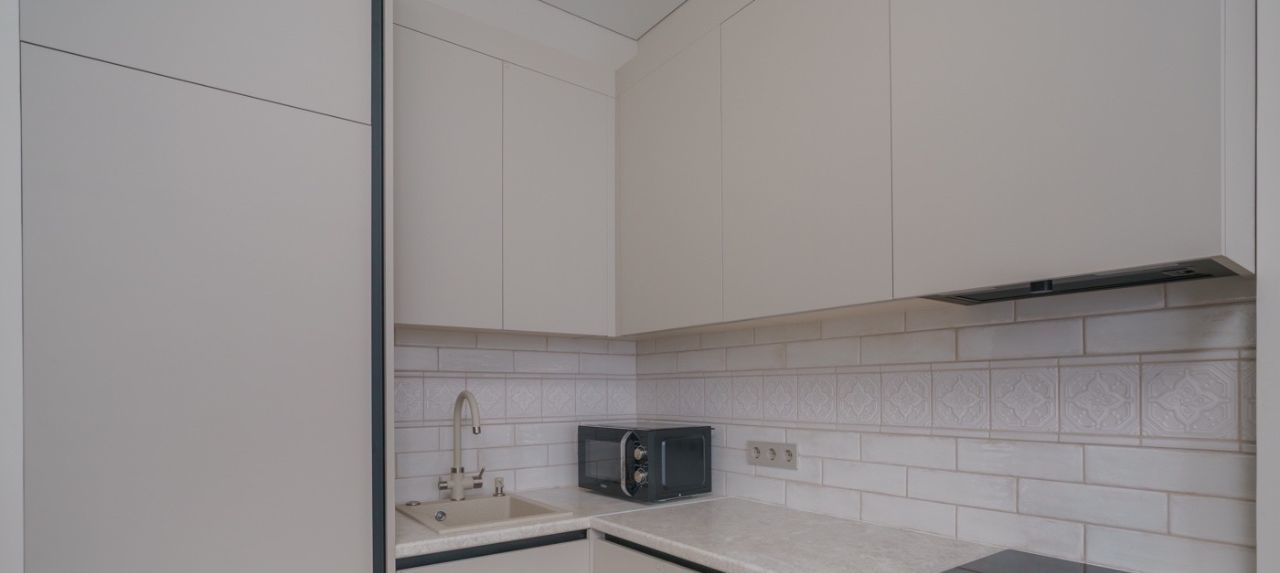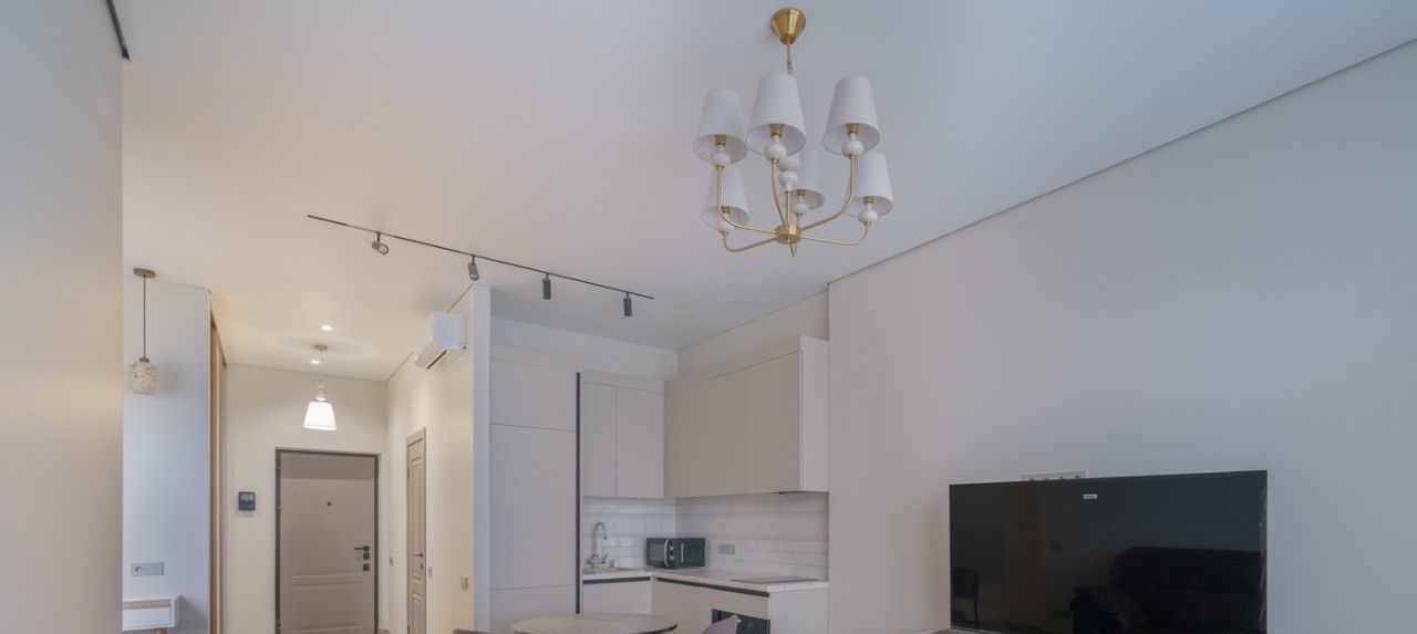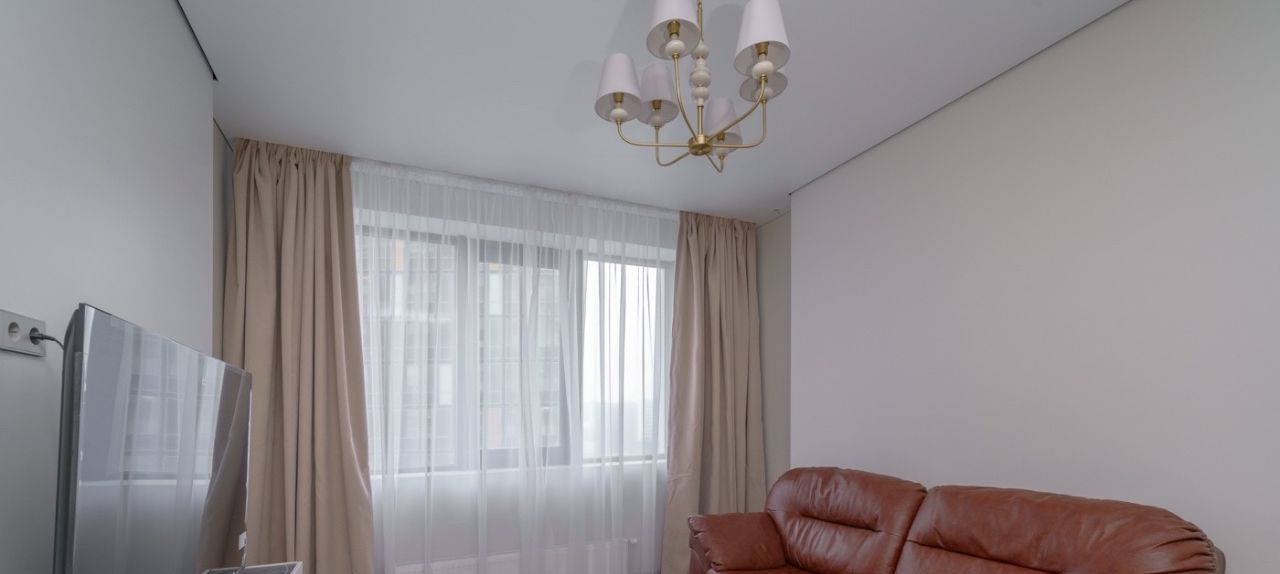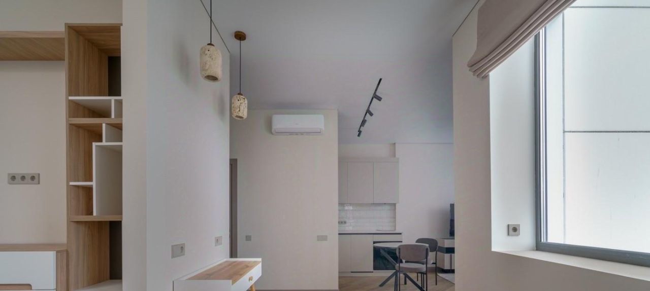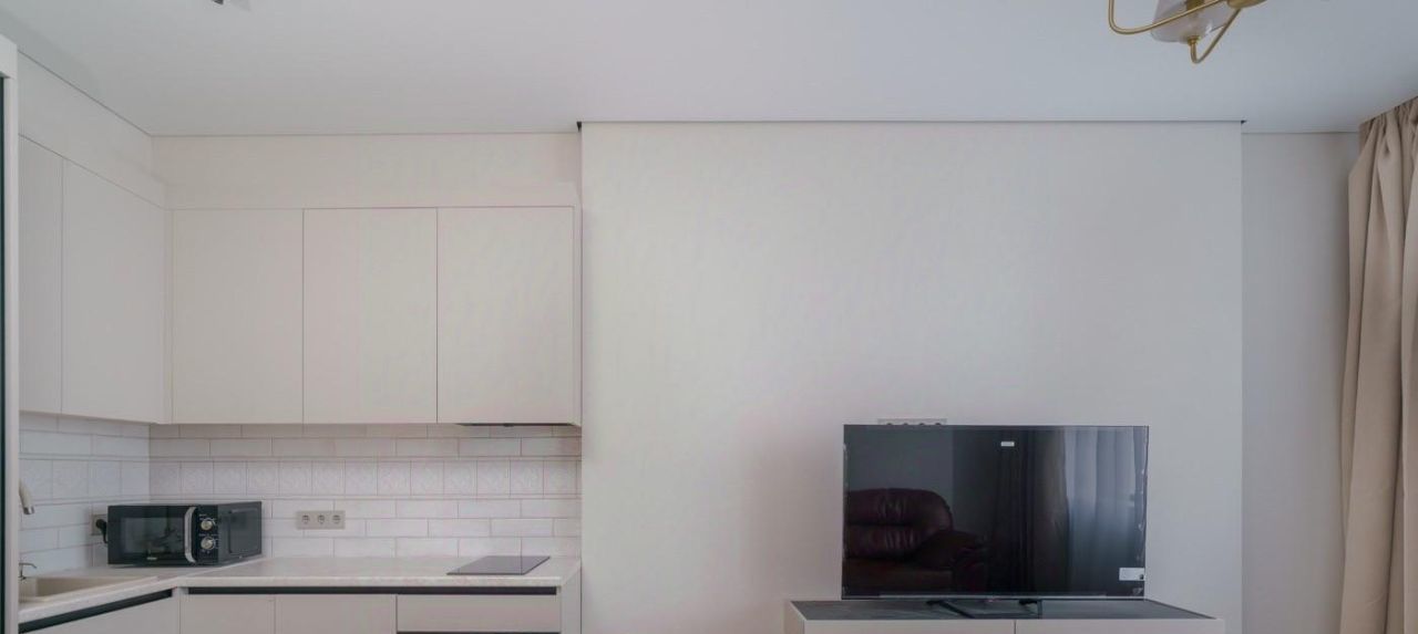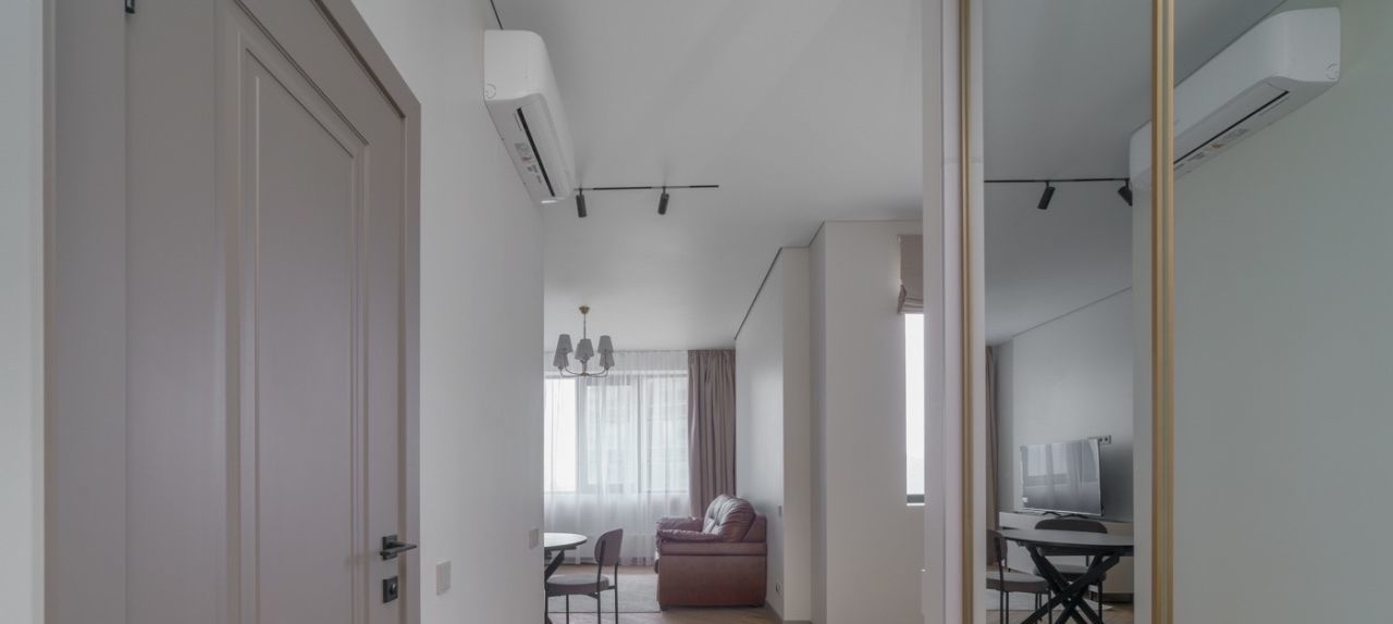 Квартира полностью меблирована и оснащена всей необходимой техникой для комфортного проживания. Здесь есть кондиционер, холодильник, посудомоечная и стиральная машины, а также телевизор. Совмещённый санузел оборудован душевой кабиной. Кухня и комнаты обставлены мебелью, готовой к использованию.