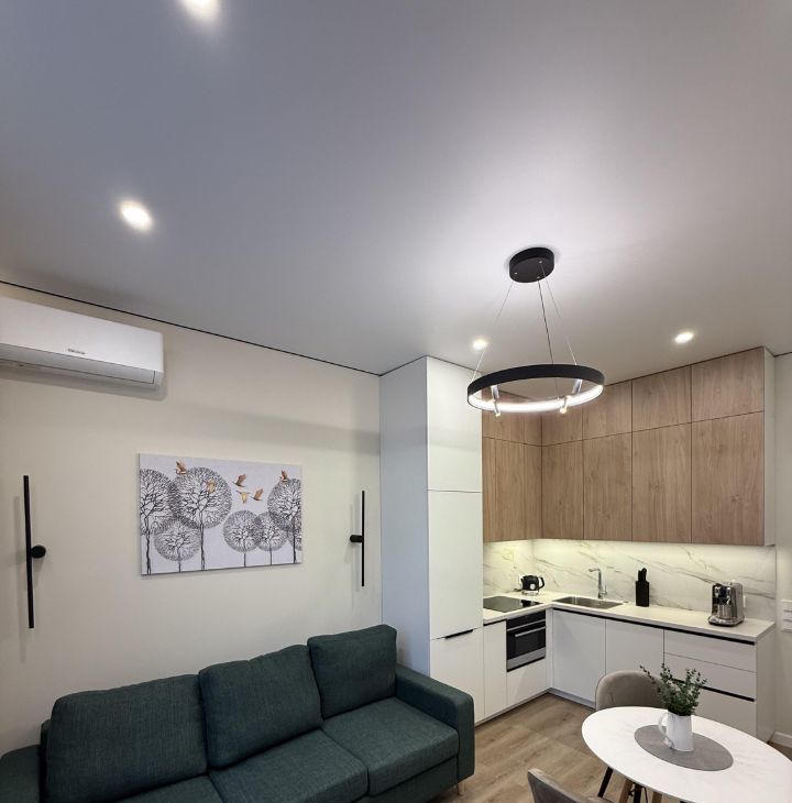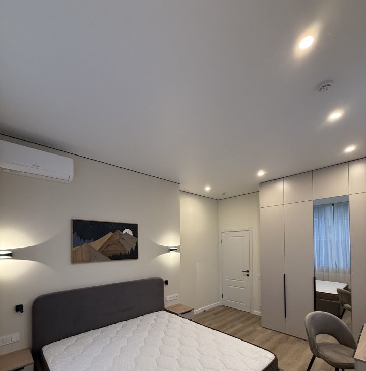 Апартамент только после ремонта, никто не жил, качественный матрас, много мест доя хранения, вся встроенная техника, кофемашина, рабочее место, раскладной диван, разные сценарии освещения, теплые полы.
