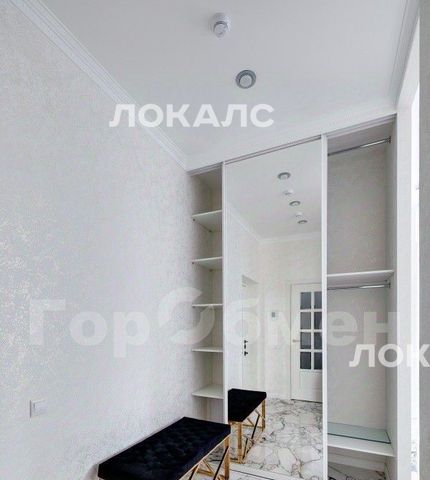 Гардеробная комната для хранения вещей при входе в квартиру и встроенный шкаф-купе с зеркальными дверцами, где можно разместить большое количество одежды, сумок и обуви.