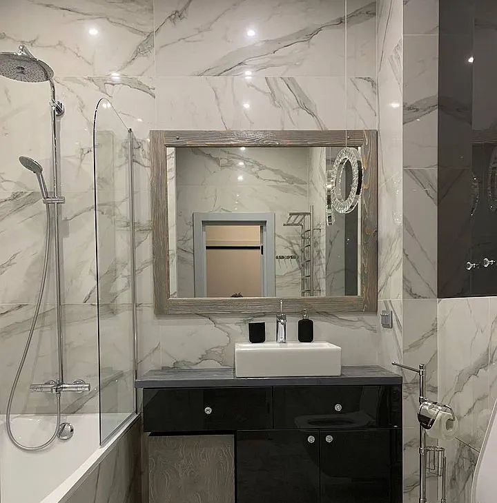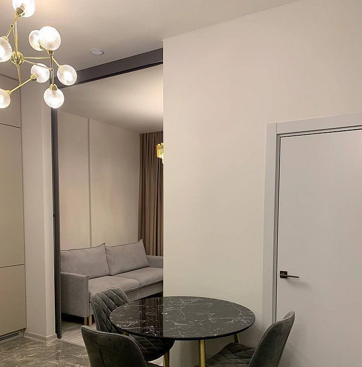 Но локация здесь не самое приятное. Ремонт тоже заставляет глаз радоваться и чувствовать себя как дома, а не в квартире под сдачу. Вся мебель изготовлена под заказ с учетом индивидуальных особенностей и эргономики. Сантехника Villеrоy & Восh, смесители Grоhе, бытовая техника Воsсh, отдельная гардеробная, зонирование всех комнат.