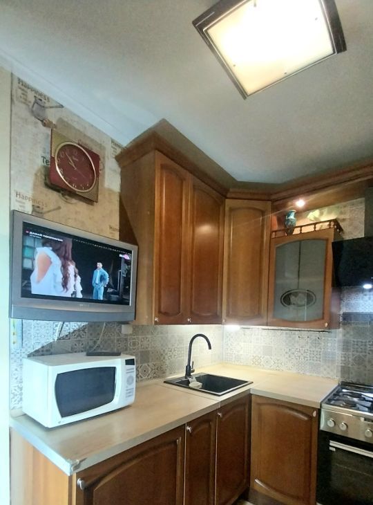 Техника: плита, микроволновая печь, телевизор, стиральная машина, холодильник