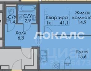 2-к кв. Москва Сигнальный проезд, 16/1 (42.0 м²)