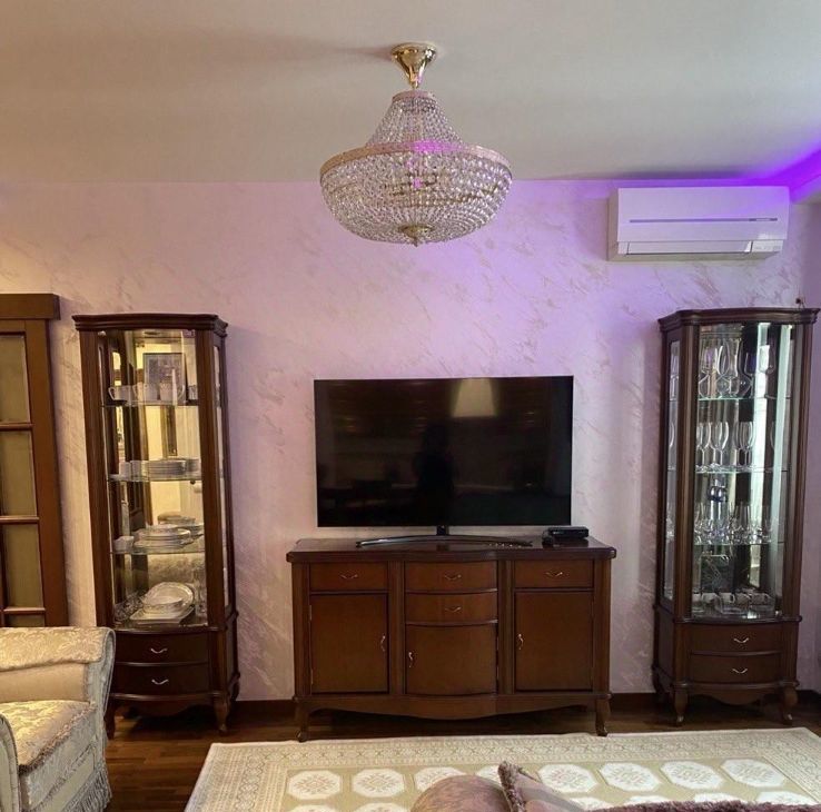 Планировка в стиле удобной евродвушки и обстановка в квартире позволяют комфортное проживание и размещение всех необходимых вещей: вместительные шкафы, буфеты, спальный гарнитур (новый), мягкая мебель (новая), встроенная кухня с техникой Smeg, холодильник (новый), микроволновая печь (новая), чайник (новый), два телевизора (новые), утюг, гладильная доска, пылесос, фен и прочее, что необходимо в быту. По желанию можем оставить кофе-машину. В квартире два санузла, сантехника Ykob Dolfon, стиральная машина - все в идеальном состоянии. В обеих комнатах кондиционеры. Все фото соответствуют действительности. Квартира никогда не сдавалась.