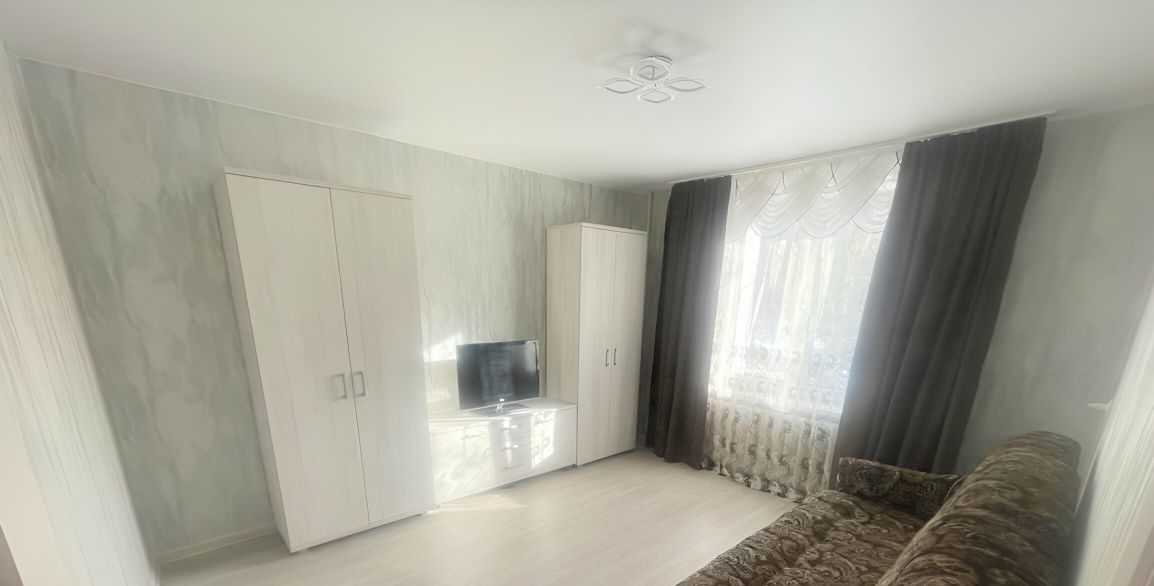 В квартире есть всё необходимое для комфортного проживания: на кухне и в комнате установлена мебель, а также техника — холодильник, стиральная машина и телевизор. Планировка включает отдельный санузел и ванну. Окна выходят во двор, поэтому в квартире всегда тихо и спокойно.