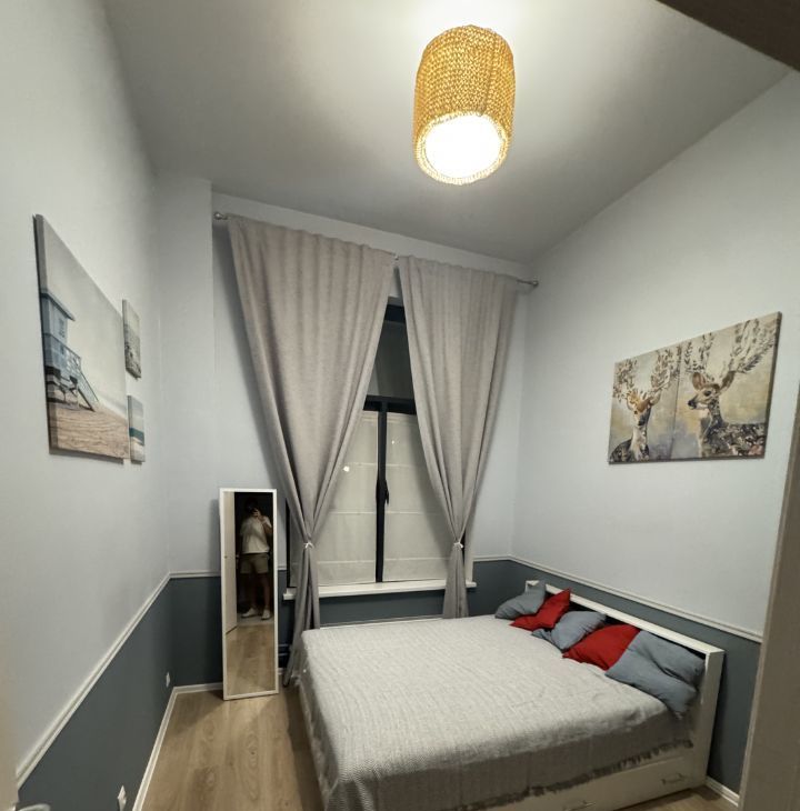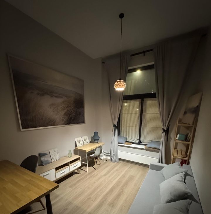 37м2 , 1 изолированная спальня, просторная гостиная зона, потолки 4 метра - в квартире много воздуха и света.