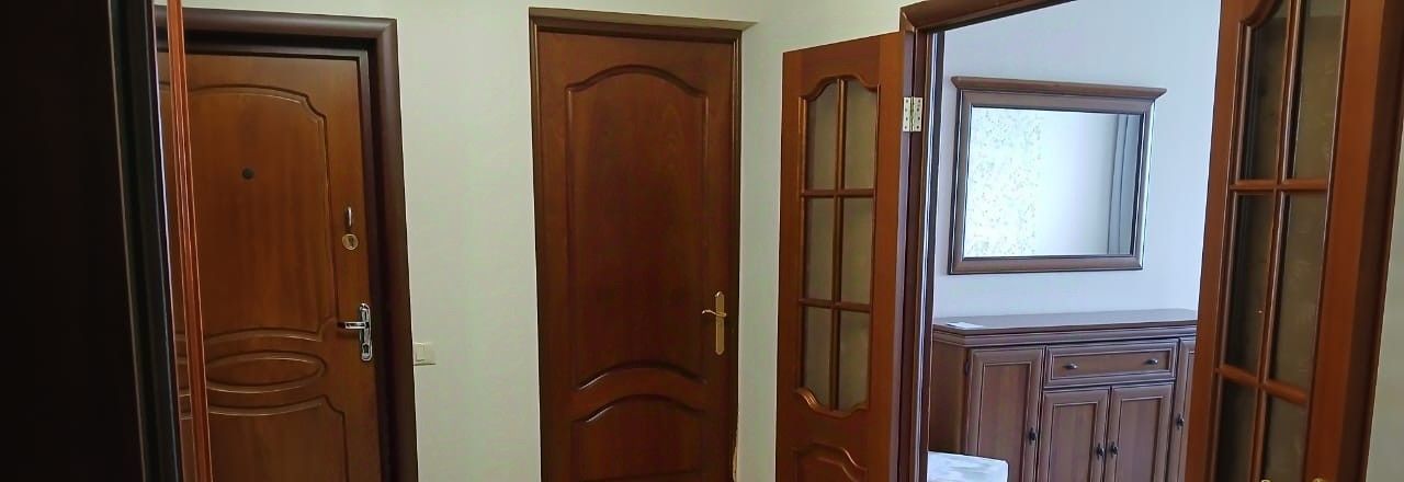 Просторная прихожая, вместительный зеркальный шкаф-купе.