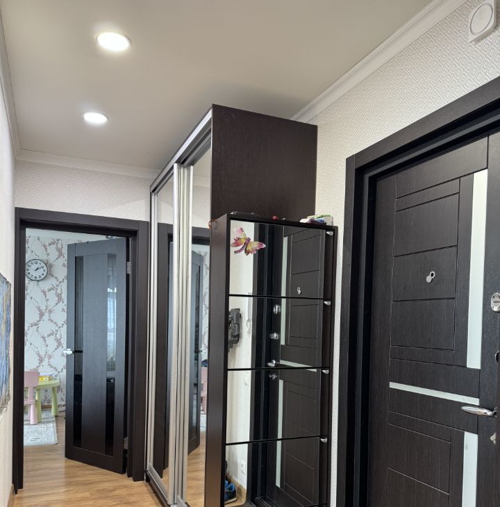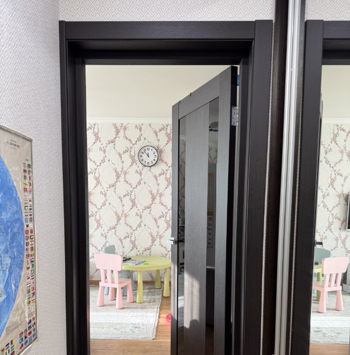 На этаже 4 квартиры, соседи хорошие, живут давно, собственники. Есть тамбурная дверь. Внизу консьерж.