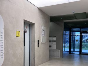 Дом в хорошем состоянии, оборудован двумя пассажирскими лифтами и пандусом для удобства передвижения. Есть наземная парковка, поэтому можно без проблем оставить автомобиль. Мусоропровод в доме добавляет комфорта. С лестничной площадки вход в просторный тамбур на три квартиры. Соседи спокойные и тихие.