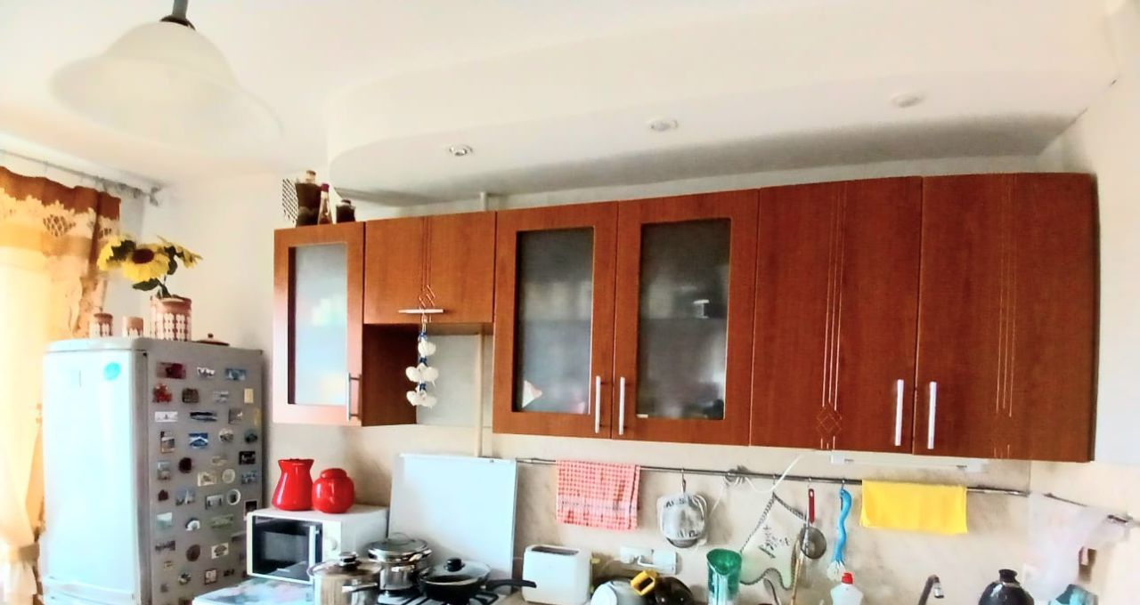 Квартира с качественным ремонтом, готова к заселению. Просторная кухня площадью 9.8 кв.м удобно спланирована. В квартире есть один совмещенный санузели и двойной балкон, окна выходят во двор, что обеспечивает тишину и спокойствие. Балкон большой и длинный. С балкона есть двери в каждую из комнат. Комнаты смежные, но легко трансформируются в изолированные.