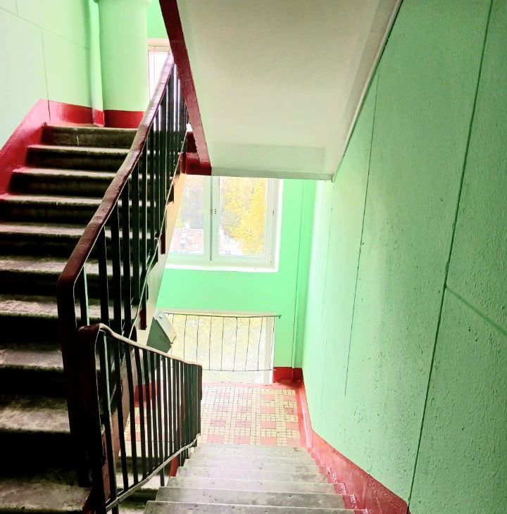 Дом в хорошем состоянии, оборудован двумя пассажирскими лифтами и пандусом для удобства передвижения. Есть наземная парковка, поэтому можно без проблем оставить автомобиль. Мусоропровод в доме добавляет комфорта. С лестничной площадки вход в просторный тамбур на три квартиры. Соседи спокойные и тихие.