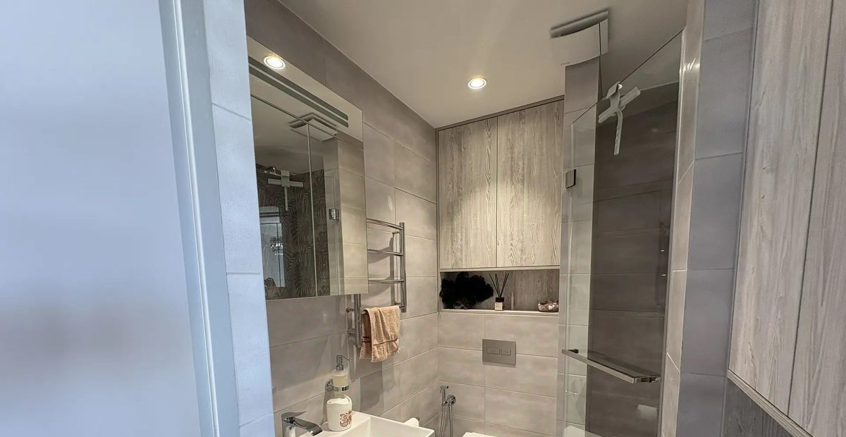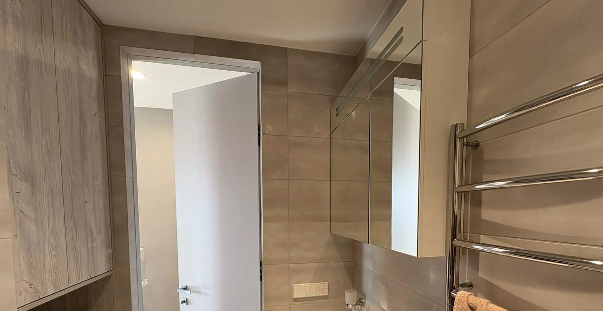 Санузел совмещенный, выполнен в современном стиле с качественной сантехникой. В прихожей предусмотрена гардеробная для удобного хранения вещей.