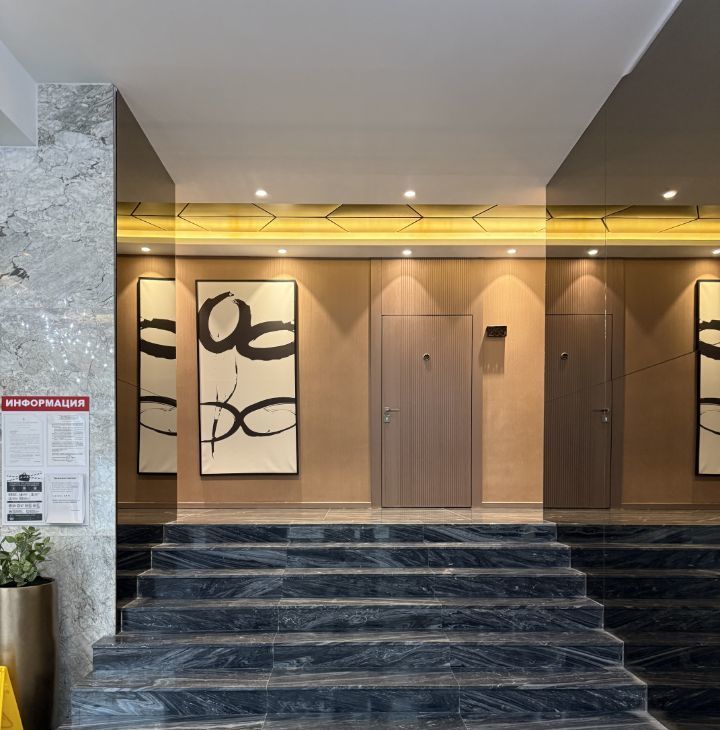 В доме 3 лифта, очень вежливые и приветливые консьержи. Подземный паркинг и охрана. Территория дома идеально благоустроена.