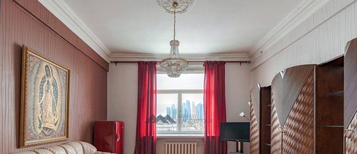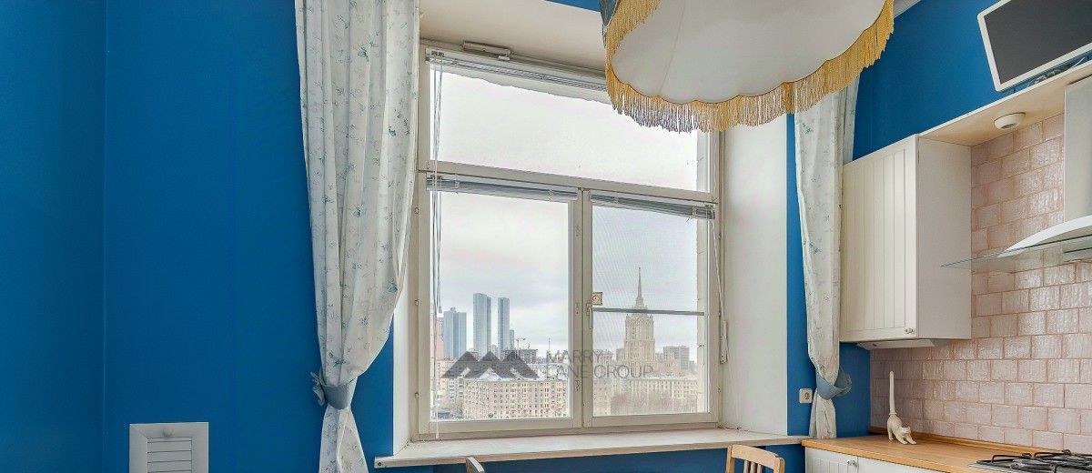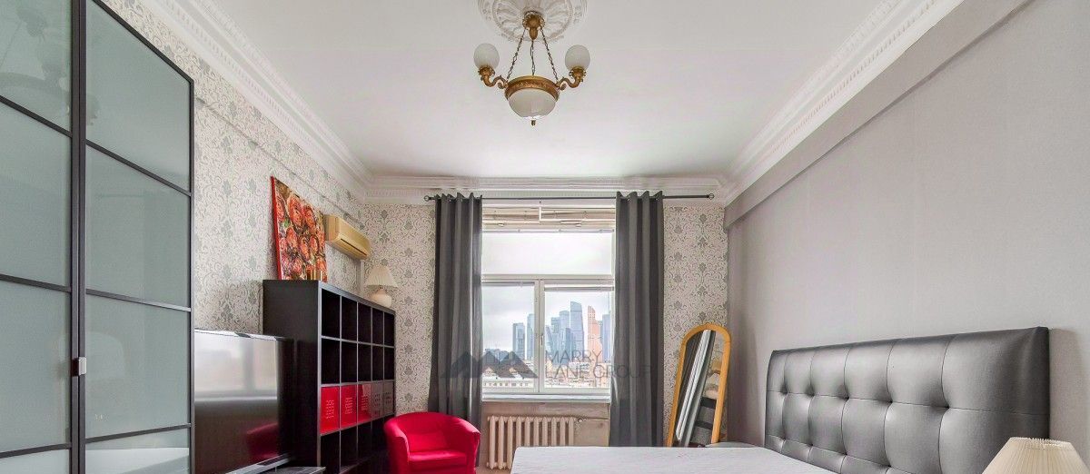 Из окон открывается потрясающий вид на гостиницу Украина, МГУ, Москва-Сити, Смоленскую набережную, воду.
