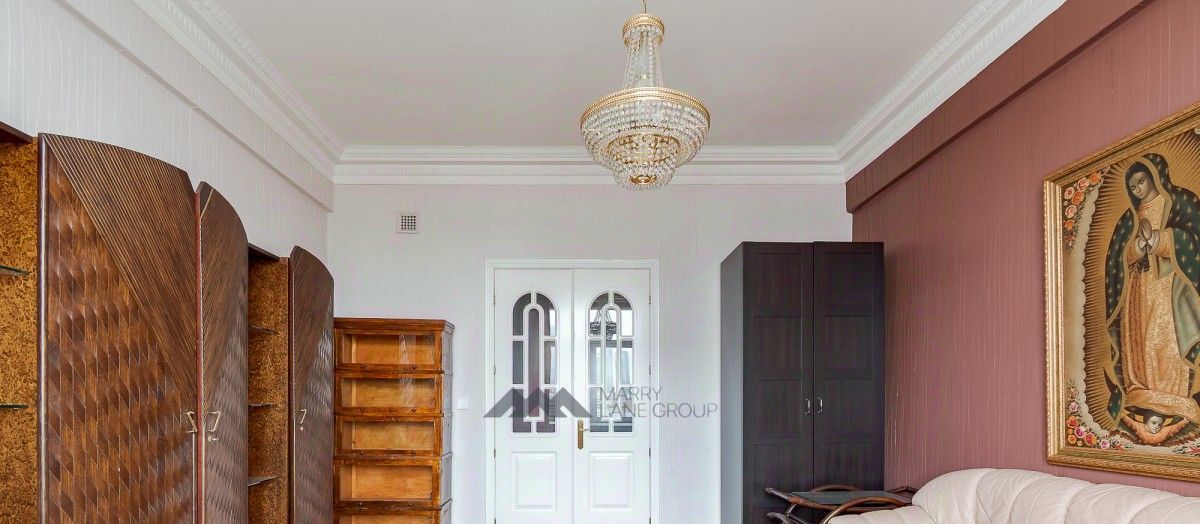 Отделка в стиле "Сталинский ампир", потолки 3,2 метра, окна выходят на юго-запад, что делает квартиру максимально светлой и солнечной.