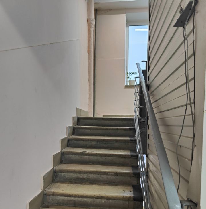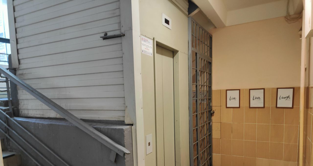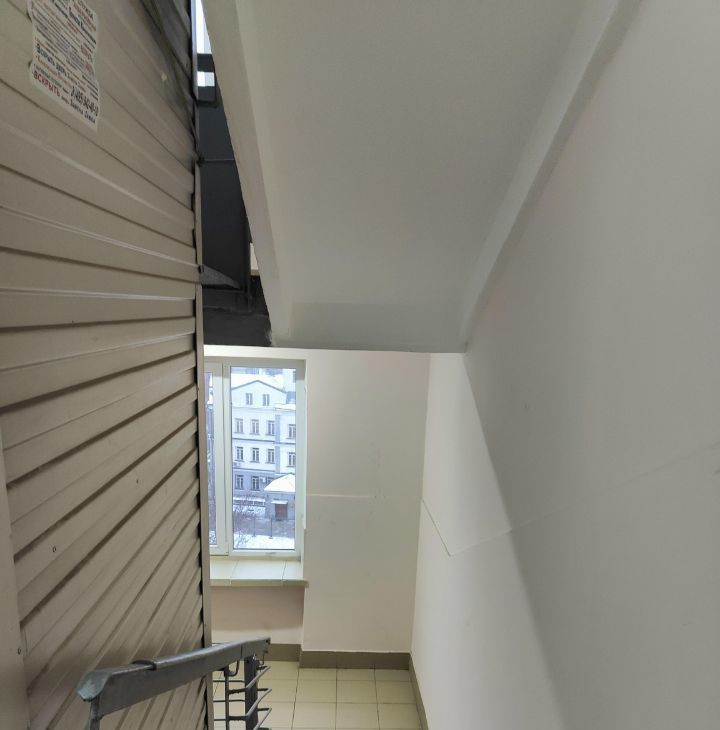 На этаже тамбур на 4 квартиры, закрывается на ключ.
