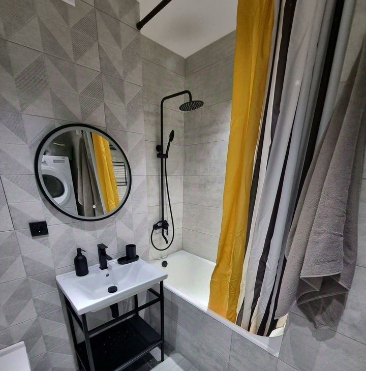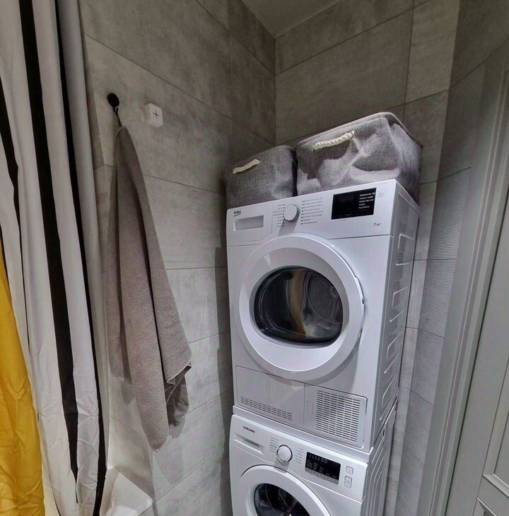 Санузел совмещенный, стиральная и сушильная машина.