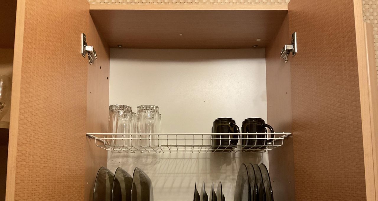 Кухня оснащена необходимой посудой для приготовления еды, включая электрический чайник, кухонные принадлежности, посуда, столовые приборы