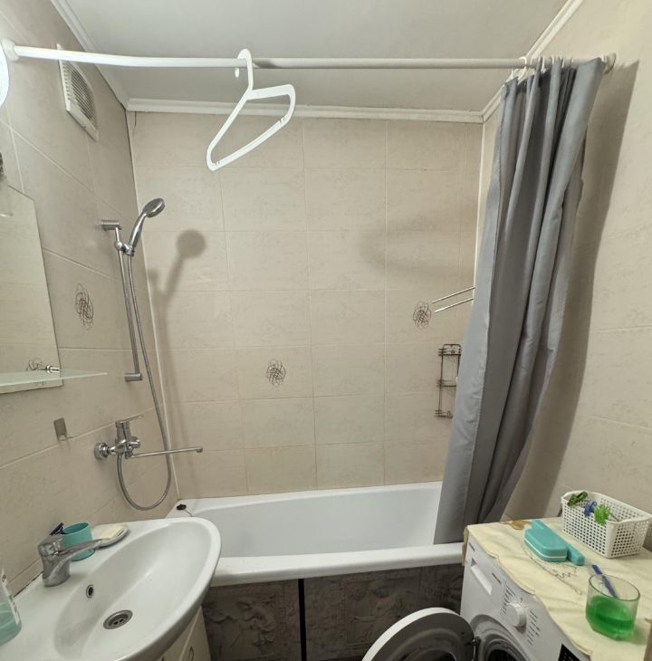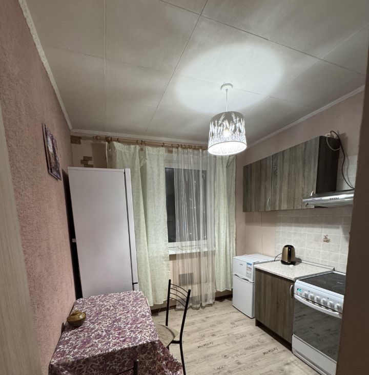 В квартире сделан евроремонт, поэтому всё выглядит современно и стильно. Жилая площадь составляет 35 кв. м, кухня — 9 кв. м. Высота потолков — 2,64 метра. В квартире есть всё необходимое для комфортного проживания: холодильник, телевизор, стиральная машина. Мебель расположена на кухне и в комнате, что позволяет легко организовать пространство. Ванная комната оборудована ванной, а санузел в квартире отдельный. Также имеется лоджия, где можно отдохнуть на свежем воздухе.