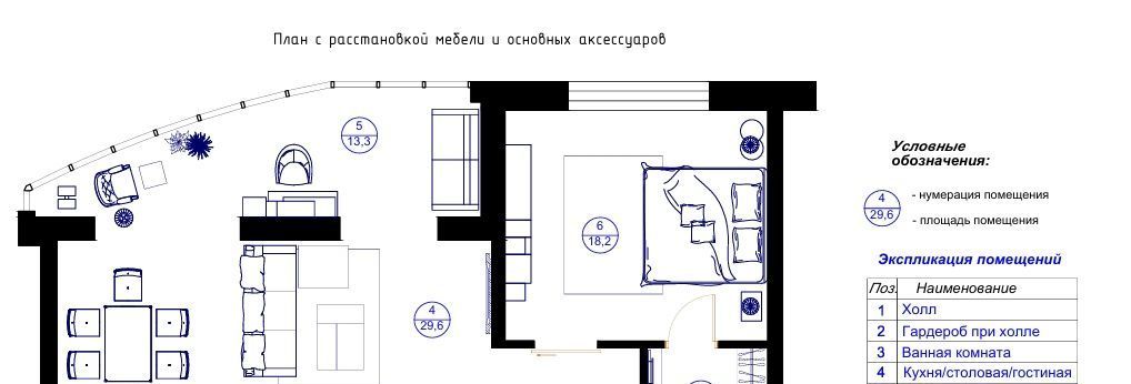 Высокие потолки 3 м добавляют ощущение простора и свободы.