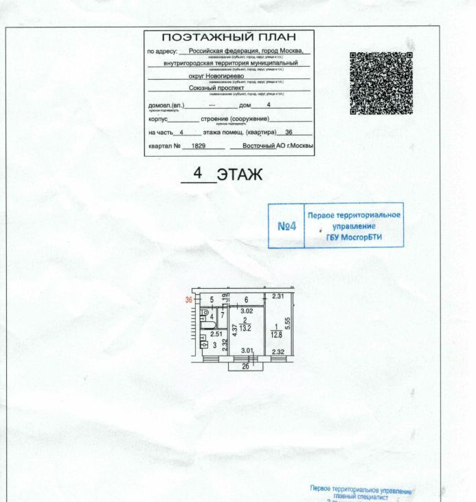 2-к кв. Москва Союзный просп., 4 (42.71 м²)