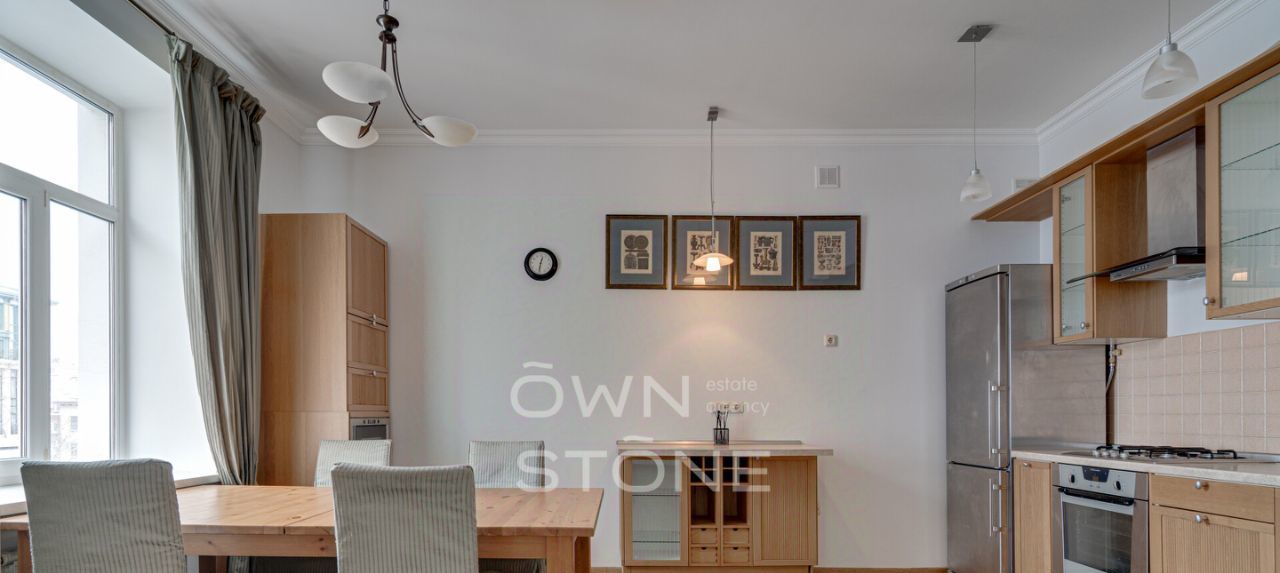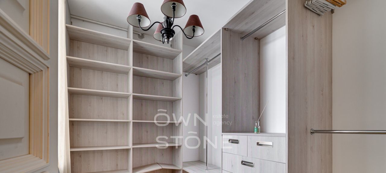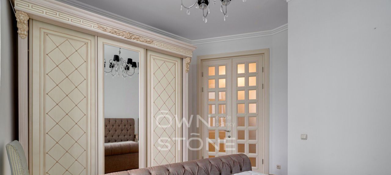 Предлагается в аренду светлая и полностью меблированная квартира с функциональной планировкой: кухня-столовая-гостиная, спальня, большая гардеробная с окном, совмещенный санузел с ванной, гостевой санузел, хозяйственная комната и холл.