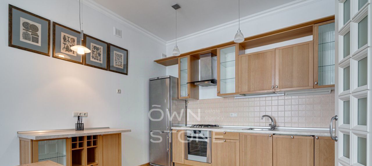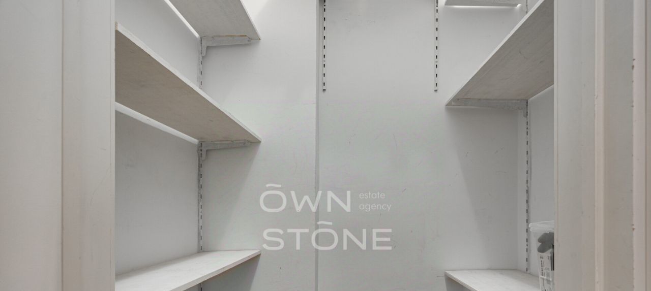 Встроенная кухня оснащена премиальной бытовой техникой, предусмотрено множество систем хранения.