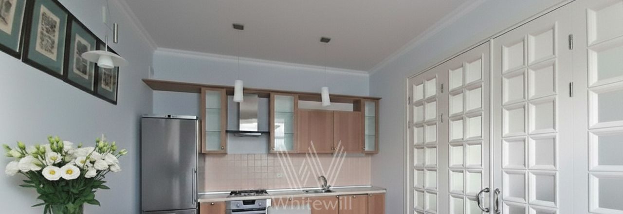 Квартира с 1 спальней общей площадью 100 м² в доме "Спиридоньевский, 10" в Пресненском районе. Светлое и уютное пространство располагается на 5 этаже. Здесь установлена вся необходимая мебель и техника, в том числе кондиционеры для поддержания комфортной температуры. Планировка включает гостиную, отдельную кухню с обеденной зоной, спальню, гардеробную, прихожую и 2 санузла. Окна ориентированы во двор.