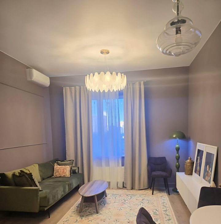 Сдается в аренду стильная двухкомнатная квартира с дизайнерским ремонтом в современном доме на 7 этаже 27-этажного здания. Просторная жилая площадь составляет 40 кв. м, а площадь кухни — 5 кв. м. Высота потолков — 3.1 метра. Дом построен в 2022 году и находится на Староалексеевской улице, всего в 10 минутах пешком от станции метро Алексеевская.