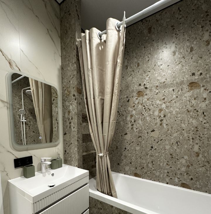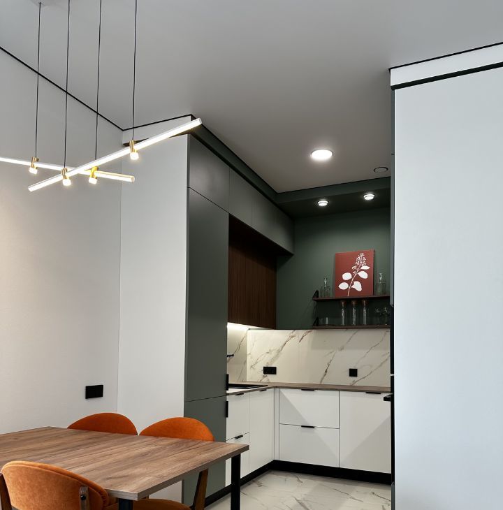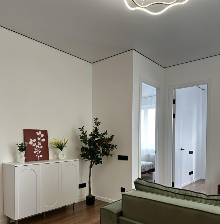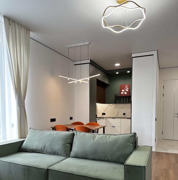 Квартира с индивидуальным интерьерным решением в современном стиле, качественной отделкой, мебелью и техникой для жизни: