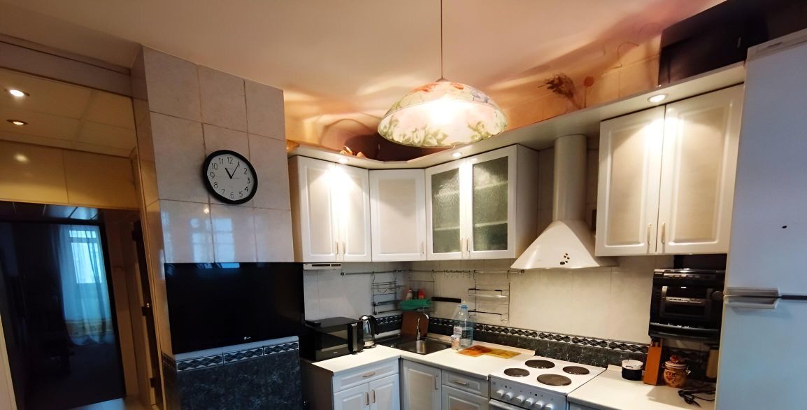 В квартире есть всё для комфортного проживания. Кухонный гарнитур со всей необходимой бытовой техникой (холодильник, электроплита, вытяжка, СВЧ, эл. чайник, телевизор). Обеденный стол, стулья. Так же в квартире есть пылесос, утюг, гладильная доска.