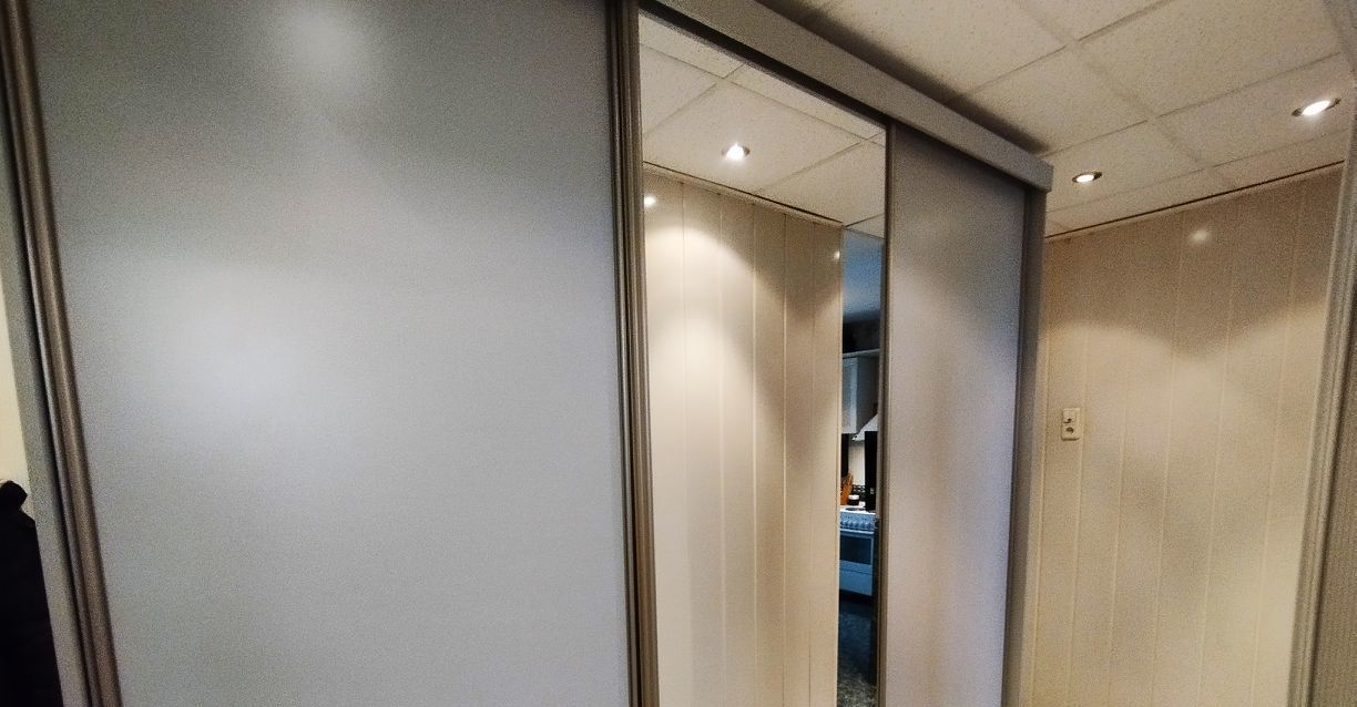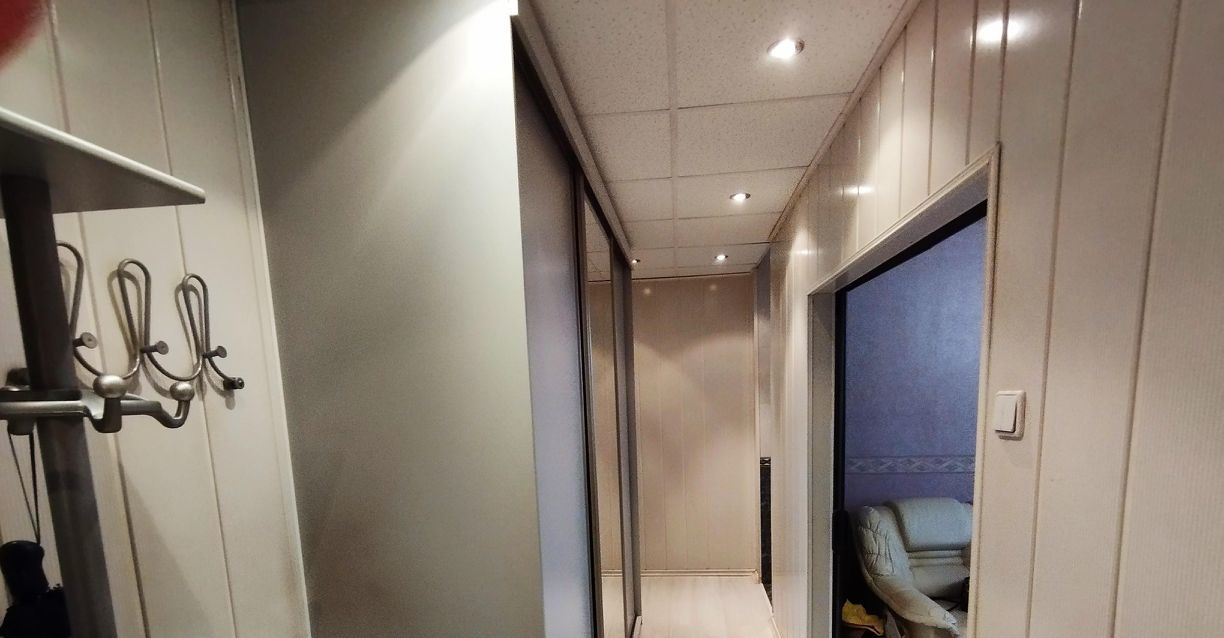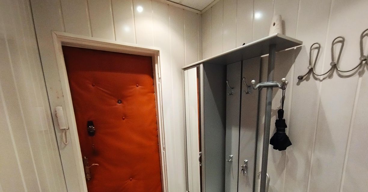 В прихожей вместительный трёхстворчатый шкаф-купе и мебель прихожая с вешалками, зеркалом, тумбочкой для обуви, домофон.