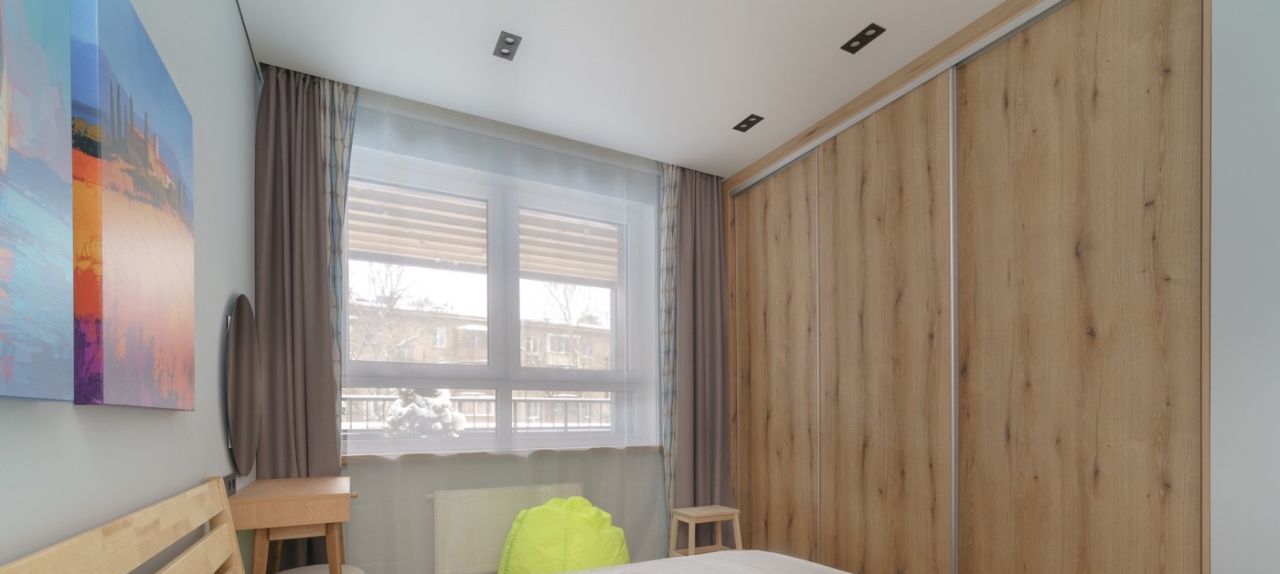 — Изолированная спальня с продуманными системами хранения и туалетным столиком дарит ощущение приватности и порядка