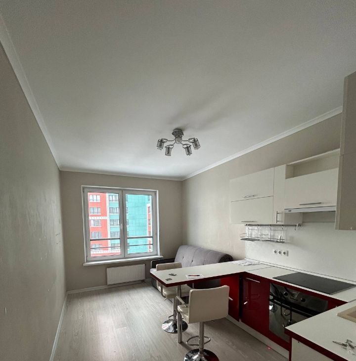 Евродвушка, одна комната изолированная, вторая совмещена с кухней. Дополнительная мебель приобретается собственником под потребности арендатора. В стоимость включены все платежи, сверху только счётчики на электричество и воду.