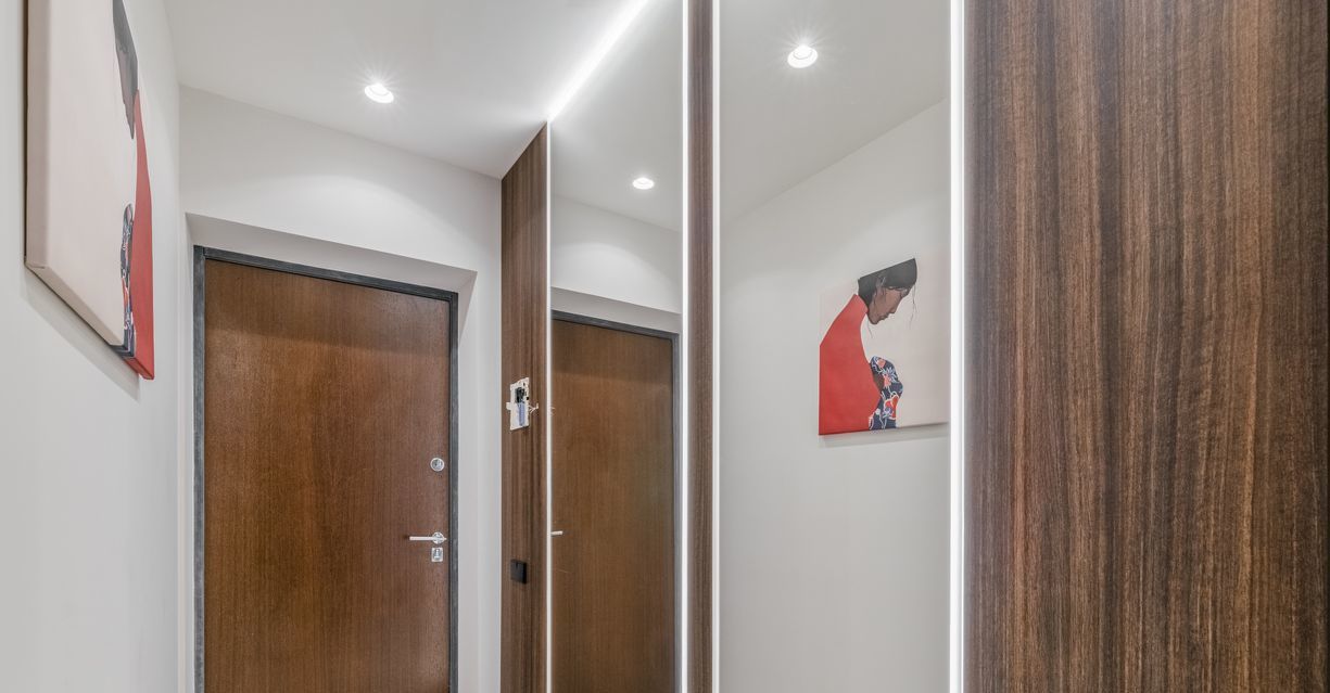 ХОЛЛ с двумя встроенными шкафами и пуфиком.