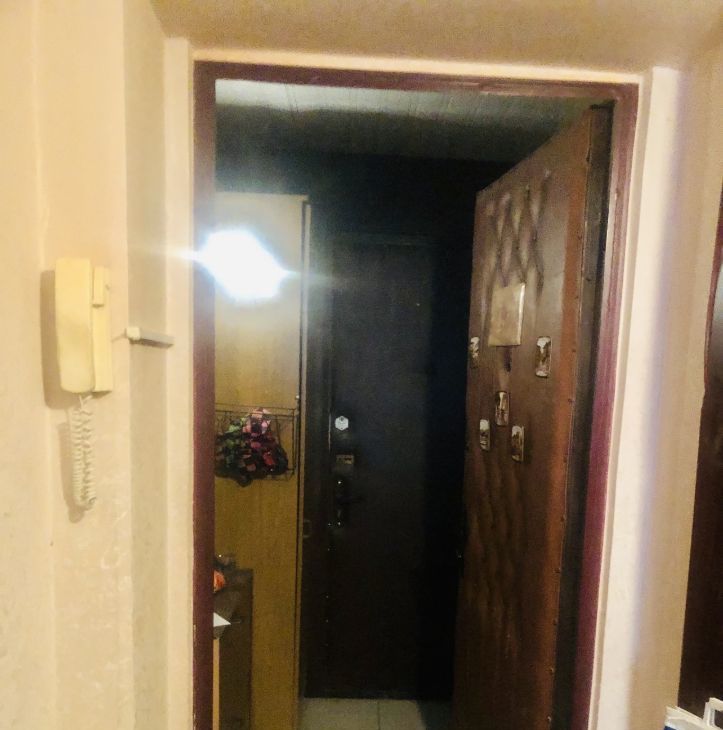 металлическая входная дверь. аккуратный подъезд с двумя лифтами и видеонаблюдением.