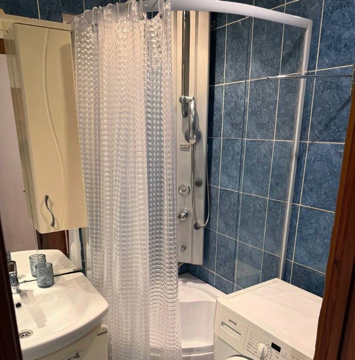 В квартире выполнен косметический ремонт установлены стеклопакеты, на полу плитка, ламинат, в ванной душевая кабина, стиральная машина автомат, в большой комнате балкон застеклён.