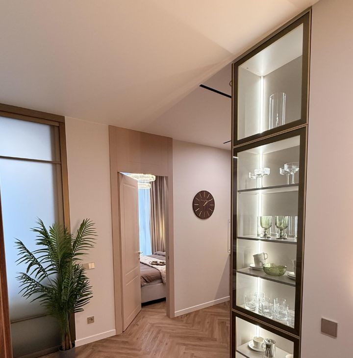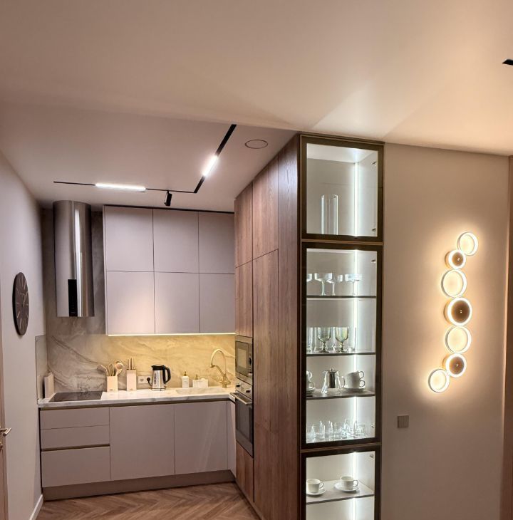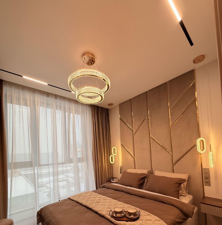 • Много сценариев освещения. Трековые светильники, подвесы, люстры, сенсорные, проходные выключатели, есть мастер выключатель, что очень удобно.