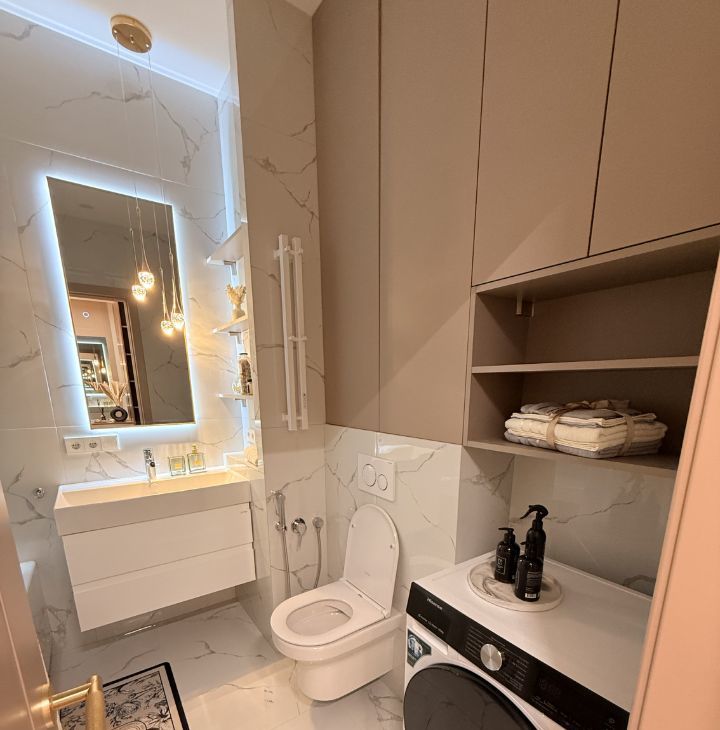 • Стиральная машина с функцией сушки. Робот пылесос. В каждой комнате есть телевизор.