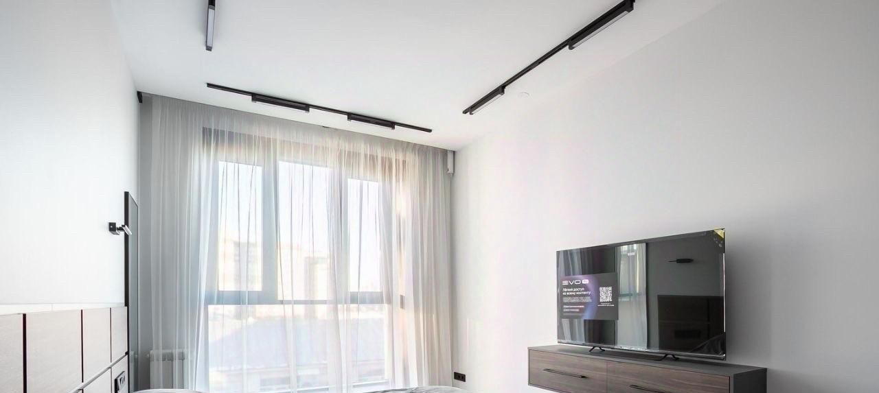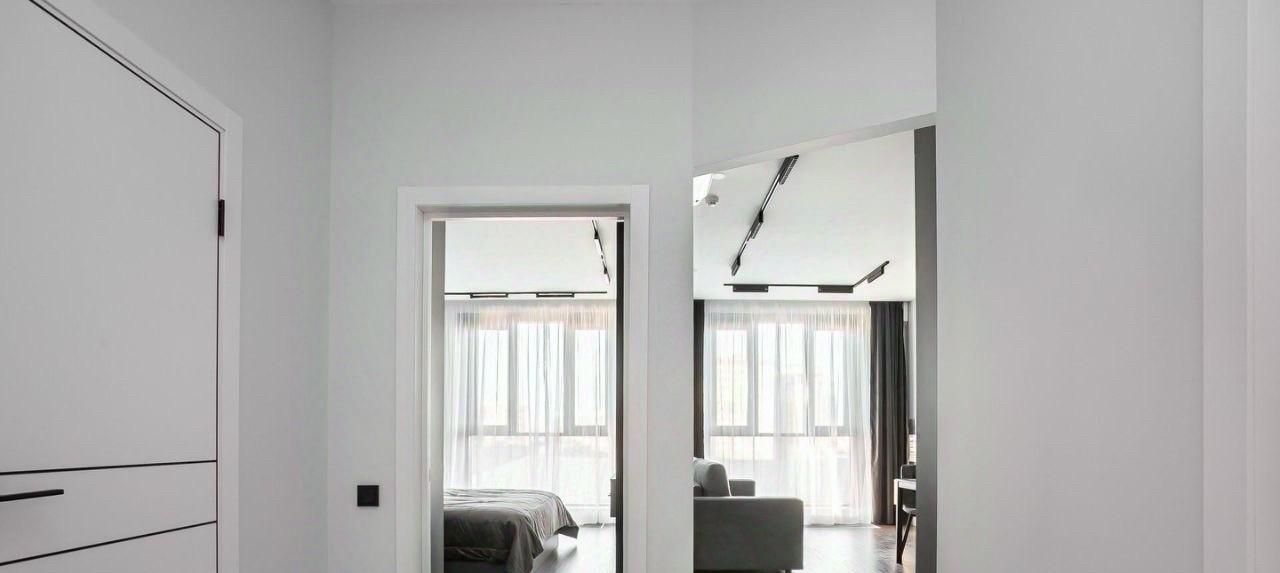 -Интерьер выполнен в светлой, воздушной палитре, что придаёт помещению лёгкость и простор
