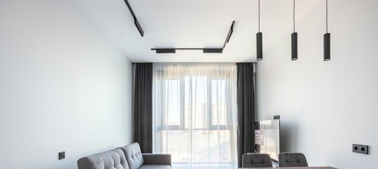 -Просторная и светлая гостиная с диваном на случай, если приедут друзья/родственники