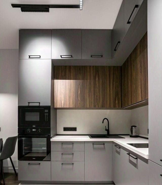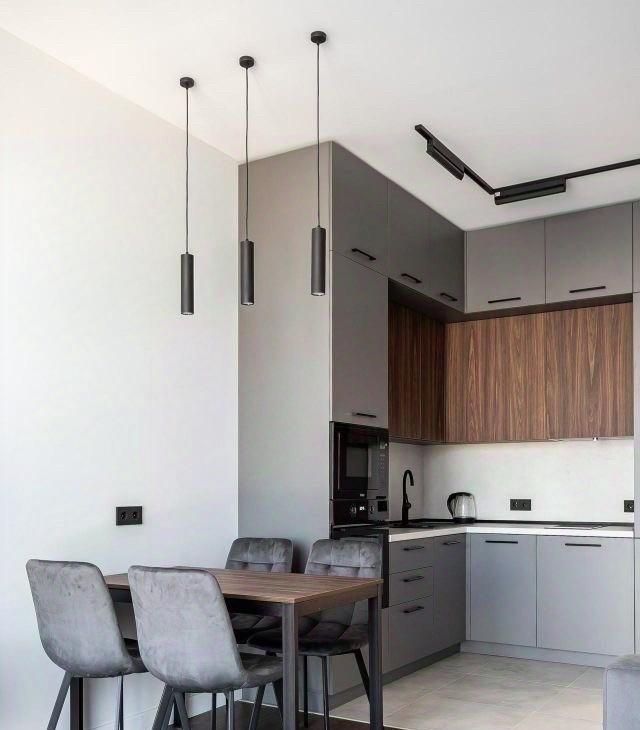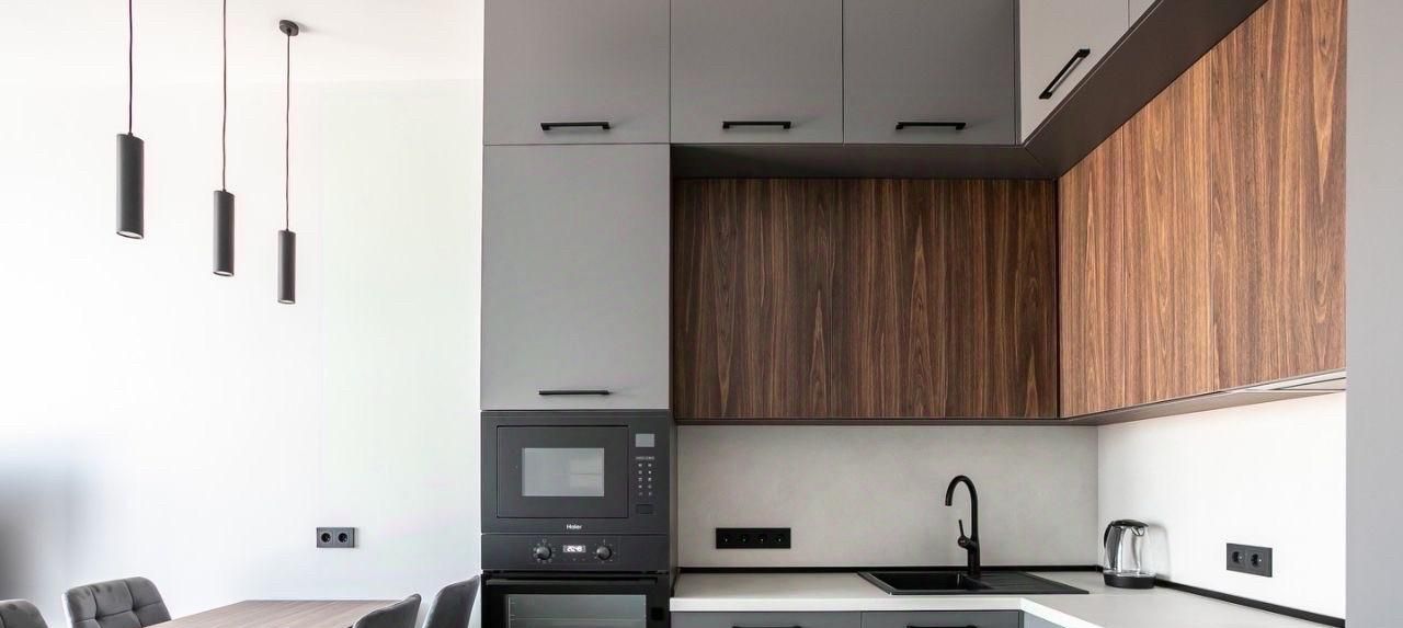 -Эргономичная кухня с удобным расположением рабочей зоны и достаточным местом для хранения, подчёркнутая современным дизайном