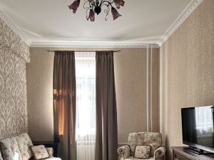В квартире сделан дизайнерский ремонт, который создаёт атмосферу уюта и комфорта. Просторная гостиная и спальня обставлены мебелью. Кухня оборудована всей необходимой техникой: посудомоечная машина, холодильник и прочее. В ванной комнате установлена современная душевая кабина. Также в квартире есть кондиционер и телевизор.