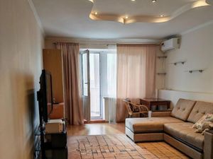 Сдаётся просторная квартира в сталинском доме с качественным ремонтом и удобным расположением. Высокие потолки 3 м, окна с современными стеклопакетами, застеклённая лоджия. Установлены надёжные входные двери, тёплые полы, паркет и плитка в отделке. Изолированные комнаты, совмещённый санузел.